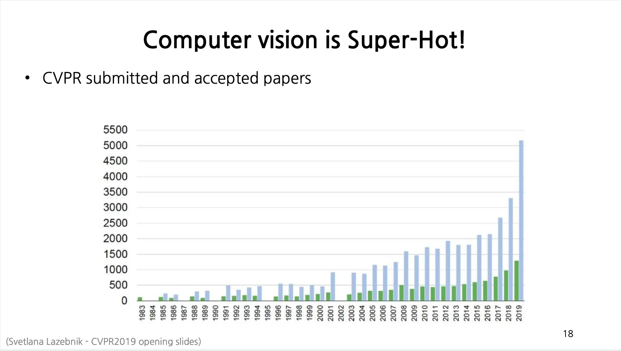 CVPR 에 제출, 게재되는 논문의 수는 exponential 하게 증가하고 있음