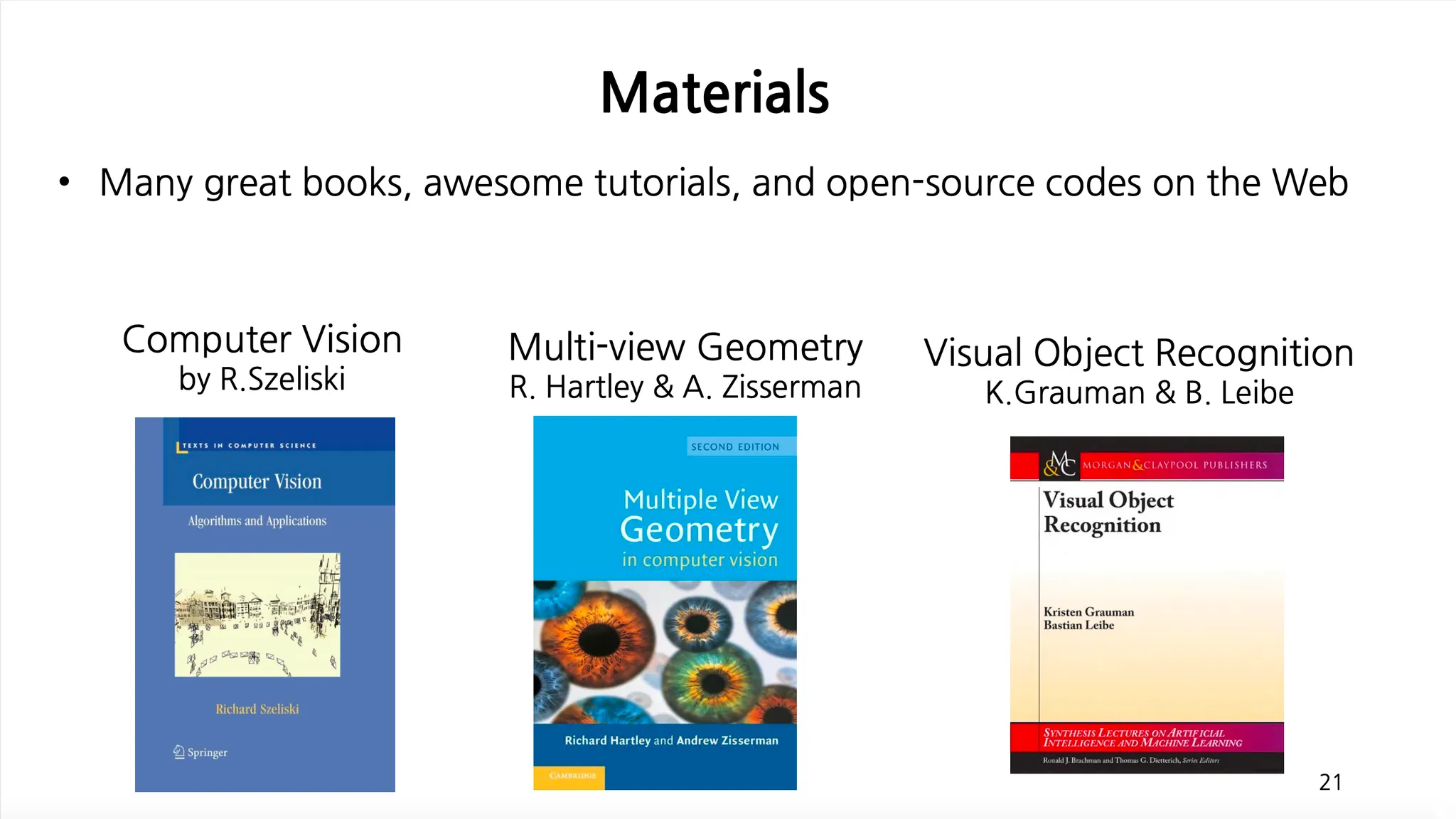 Computer Vision 은 쉽게 outdated 되는 분야이기 때문에 교재를 작성하기 꺼려지는 사람이 많고, 좋은 교재가 많이 있지는 않음