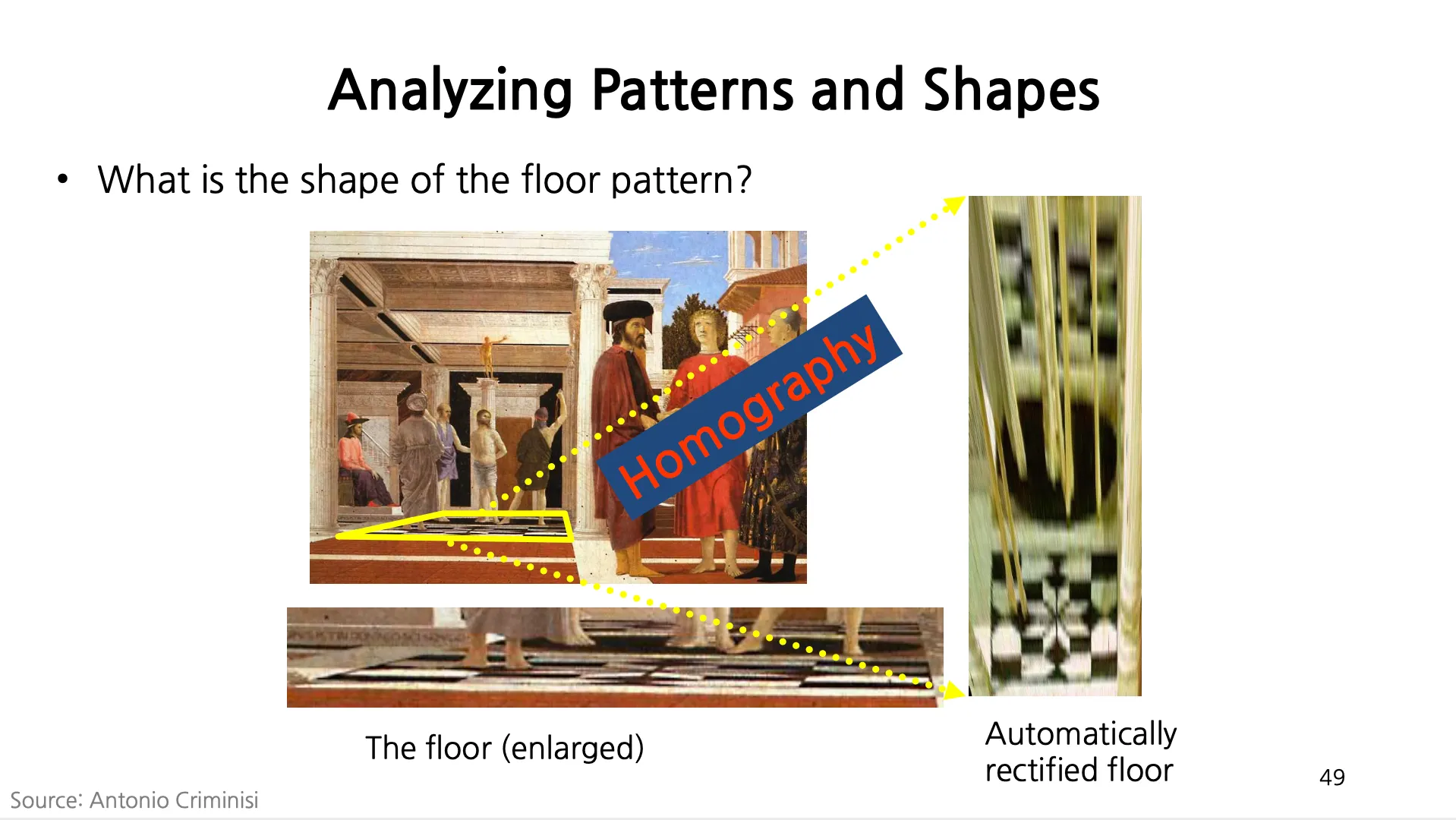 이미 알고 있는 (유명한 성당의 바닥 등) 정보를 추가적으로 이용하여 하나의 이미지만으로도 원하는 뷰의 모습을 얻어낼 수도 있음.